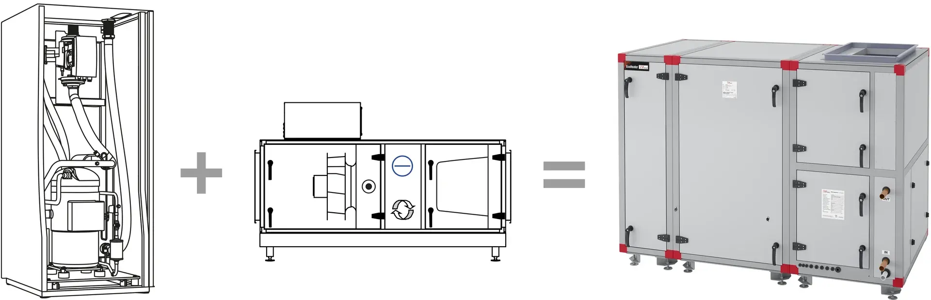 Som ekstrautstyr finner du det integrerte kjøleaggregatet EcoCooler med trinnløs regulering av kjøleeffekten. Det gir en totalløsning for ventilasjon og komfortkjøling som ikke krever installasjoner utendørs.