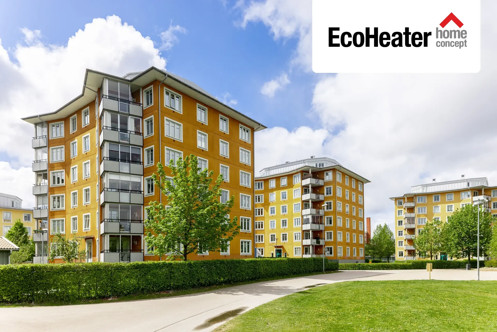 En serie fraluftsaggregat med integrert varmepumpe for energieffektivisering av flerbolighus.