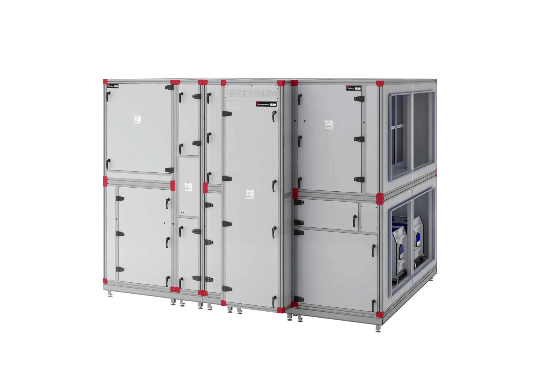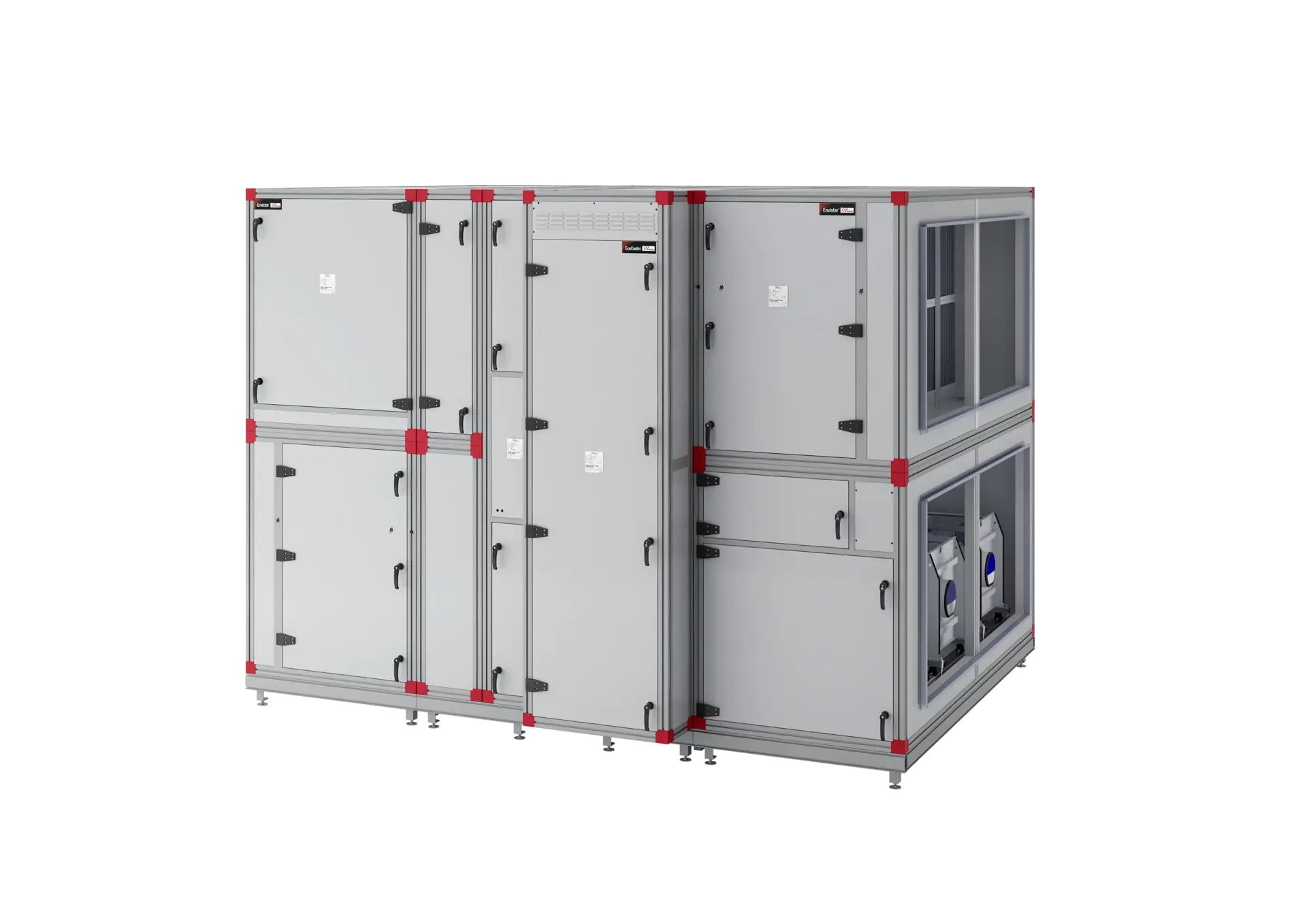 Gaveltilkoblet luftbehandlingsaggregat med integrert automatikk og et stort utvalg av funksjonsdeler.